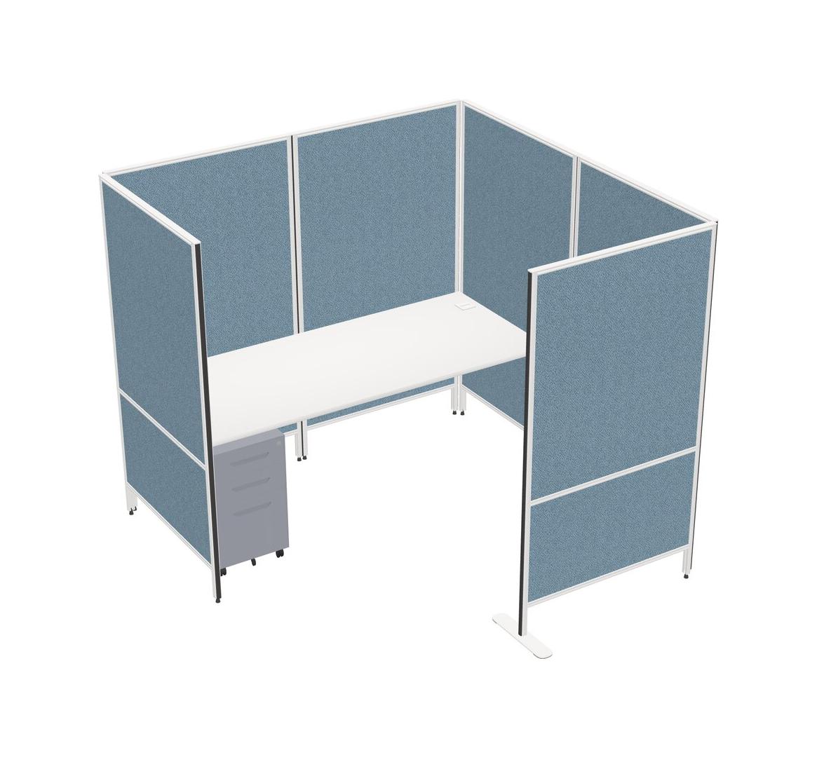 White Flexible Panel System With Privacy For 1 + Metal Mobile Drawers