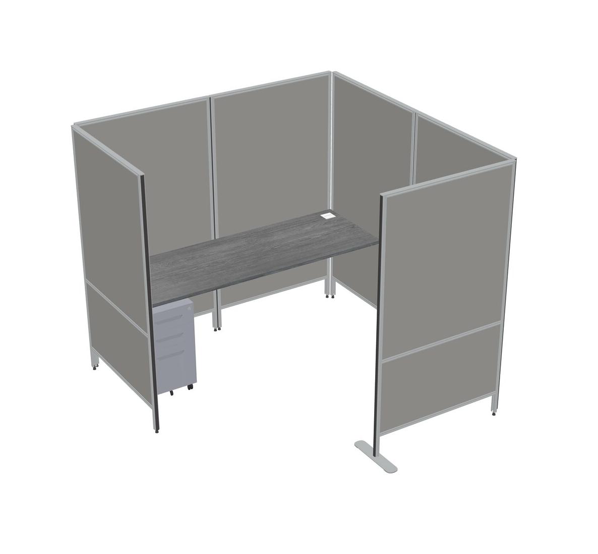 Grey Flexible Panel System With Privacy For 1 + Metal Mobile Drawers