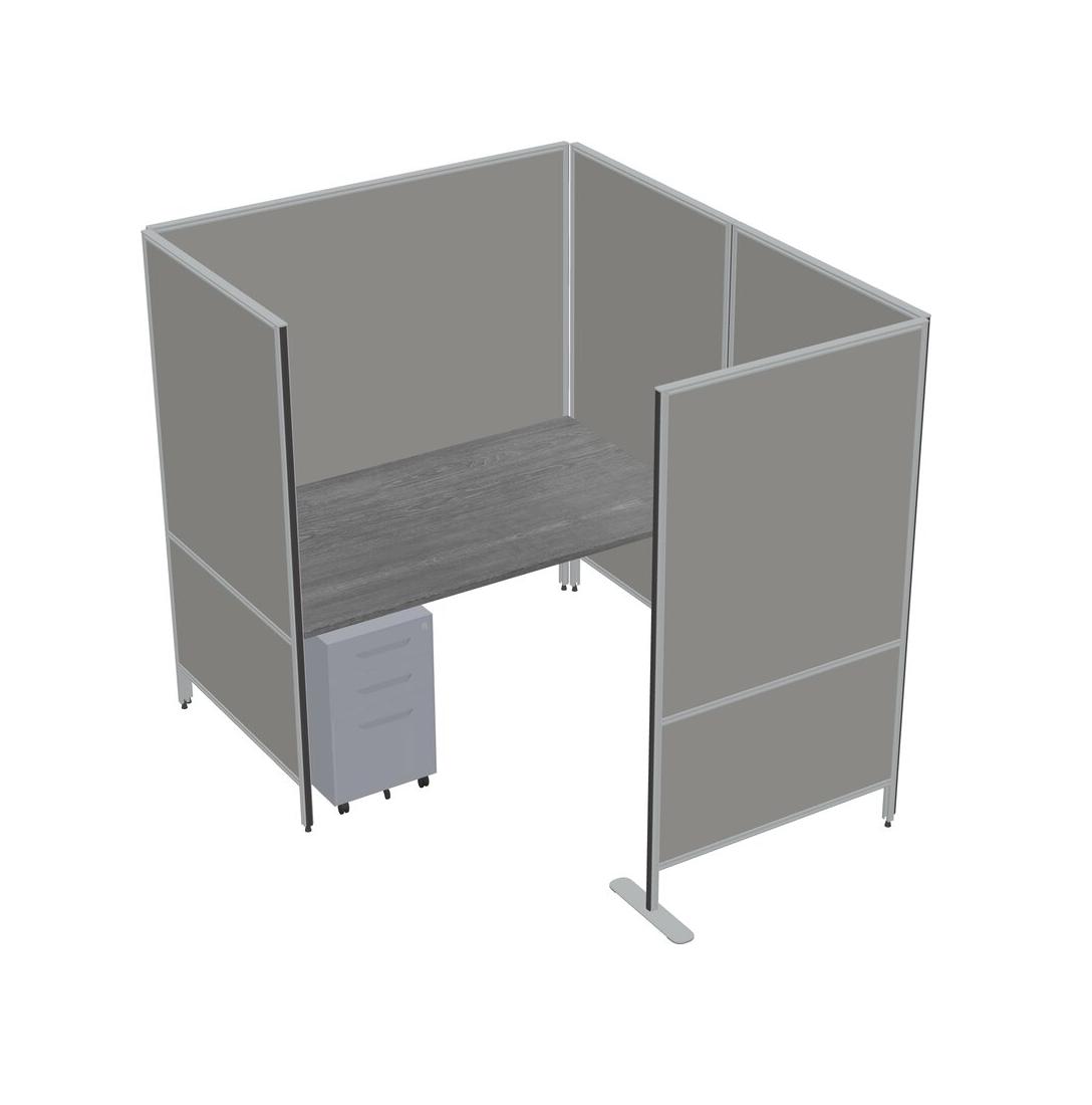 Grey Flexible Panel System With Privacy For 1 + Metal Mobile Drawers