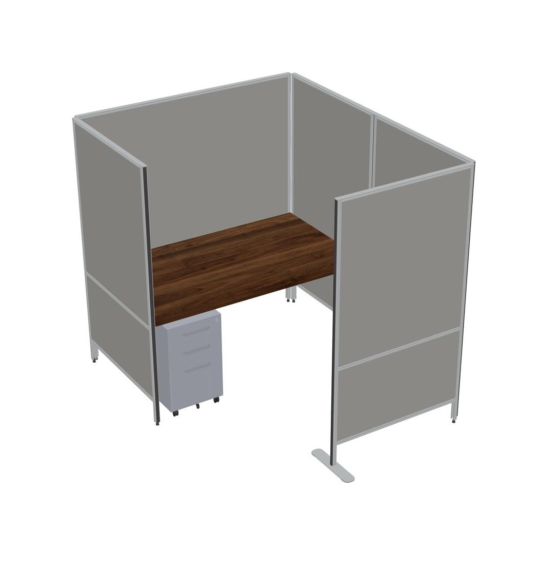 Columbia Walnut Flexible Panel System With Privacy For 1 + Metal Mobile Drawers
