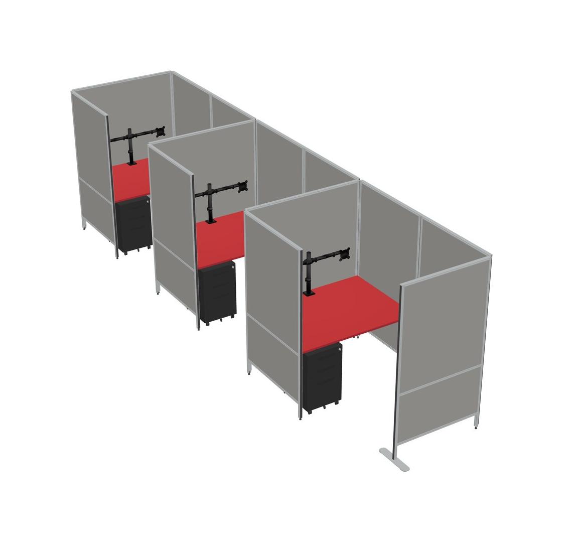 Prism Red Small Private Panel System + Panel System + Metal Mobile Drawers