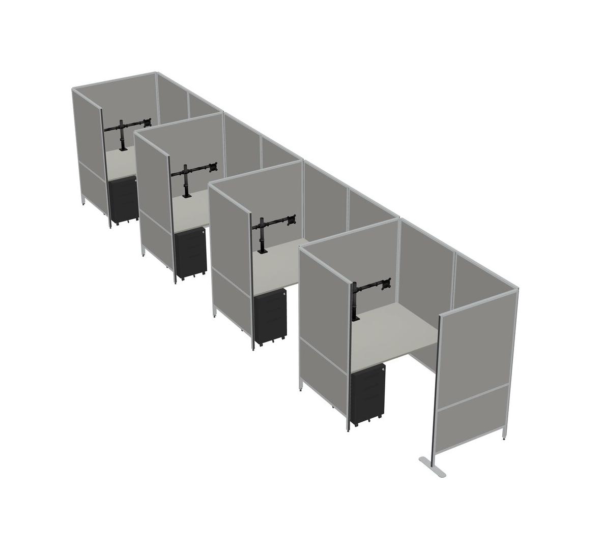 Grey Shadows Small Private Panel System + Panel System + Metal Mobile Drawers