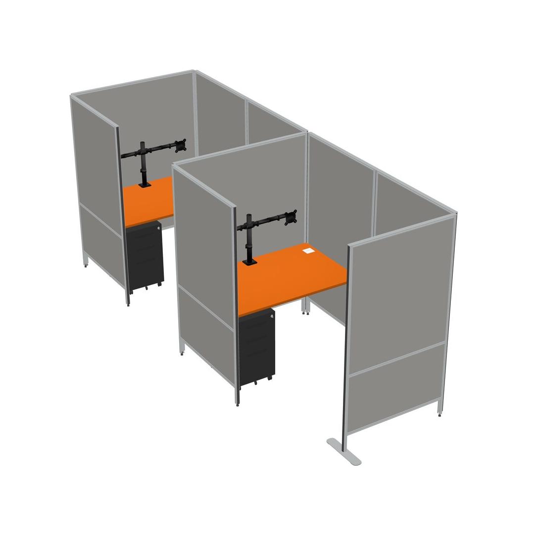 Orange Small Private Panel System + Panel System + Metal Mobile Drawers