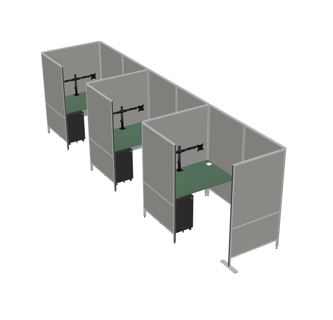 Green Small Private Panel System + Panel System + Metal Mobile Drawers