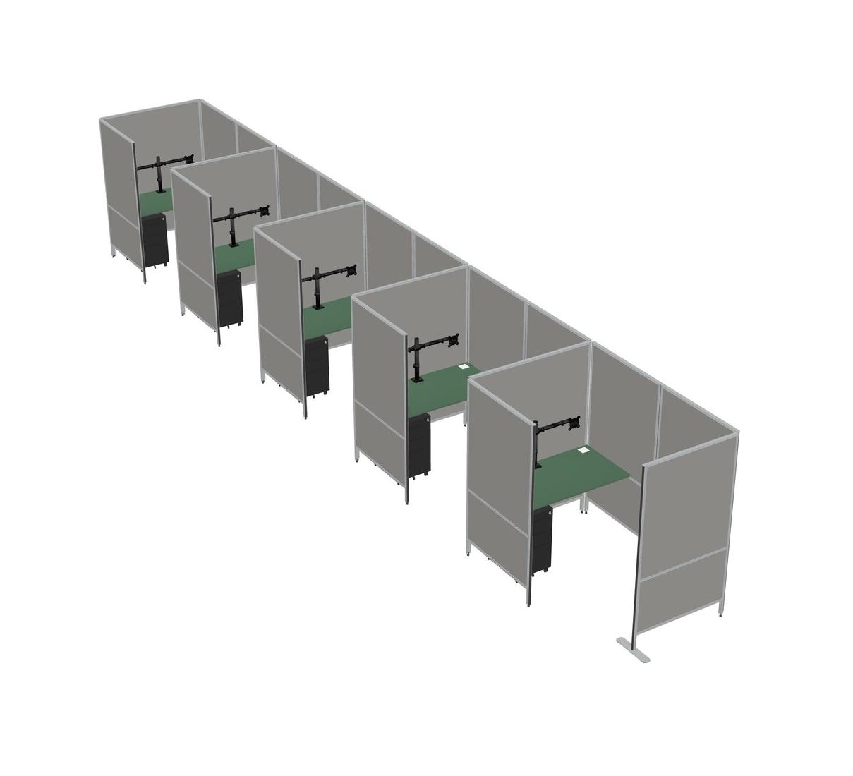 Green Small Private Panel System + Panel System + Metal Mobile Drawers