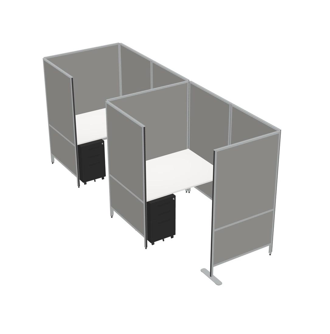 White Small Private Panel System + Panel System + Metal Mobile Drawers
