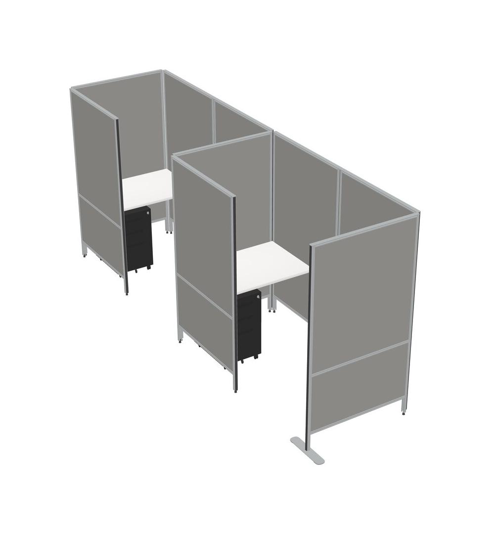 White Small Private Panel System + Panel System + Metal Mobile Drawers