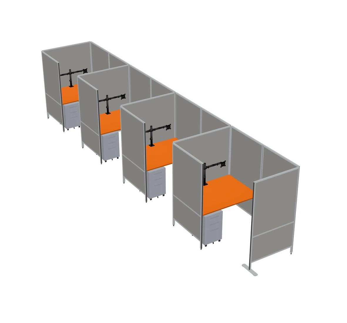 Orange Small Private Panel System + Panel System + Metal Mobile Drawers