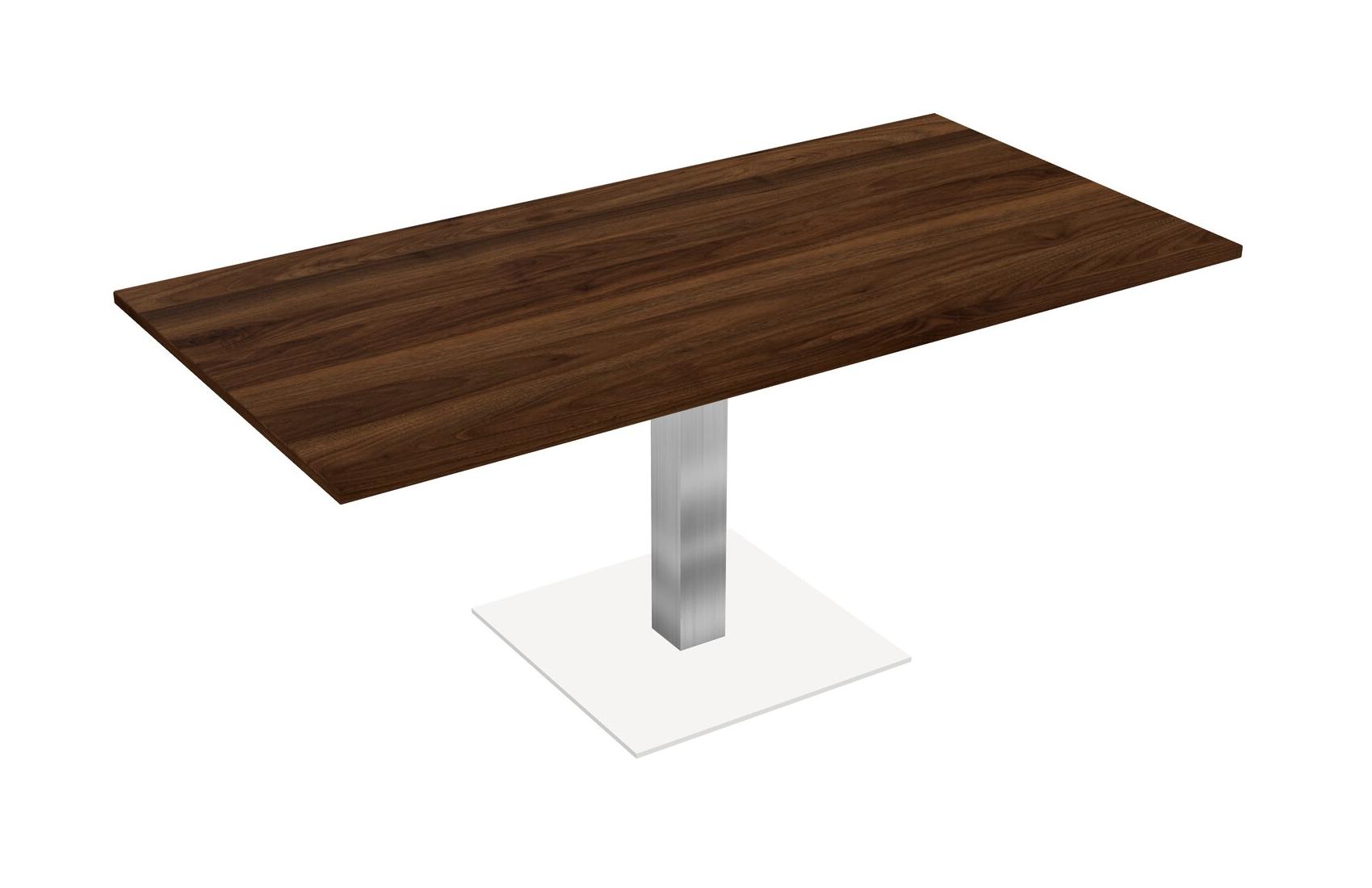 Modular Office, Restaurant, Cafeteria, Lunch Room & Food Service Table With Columbia Walnut Tabletop & Chrome Square Leg & White Square Base Plate