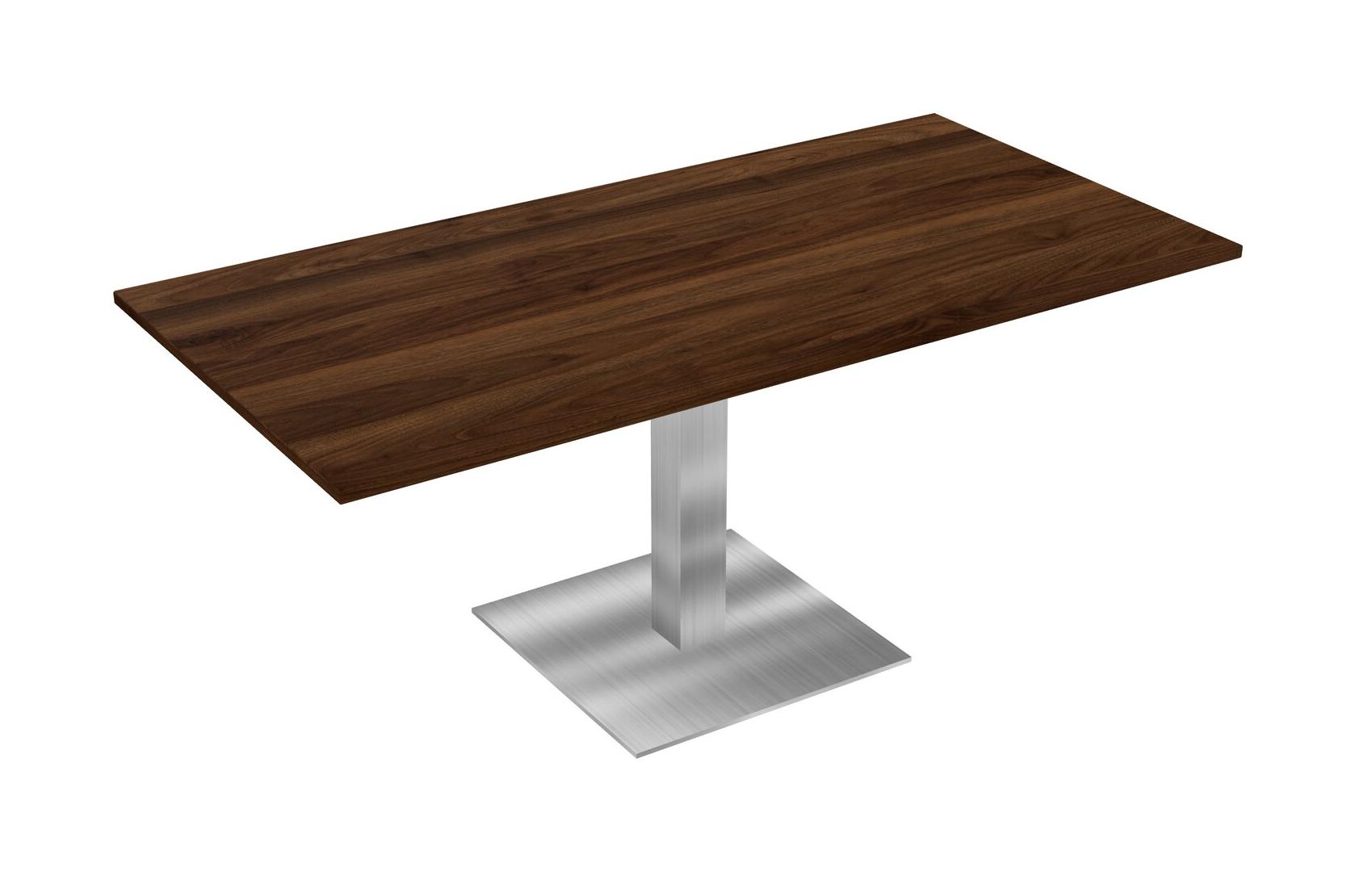 Modular Office, Restaurant, Cafeteria, Lunch Room & Food Service Table With Columbia Walnut Tabletop & Chrome Square Leg & Chrome Square Base Plate