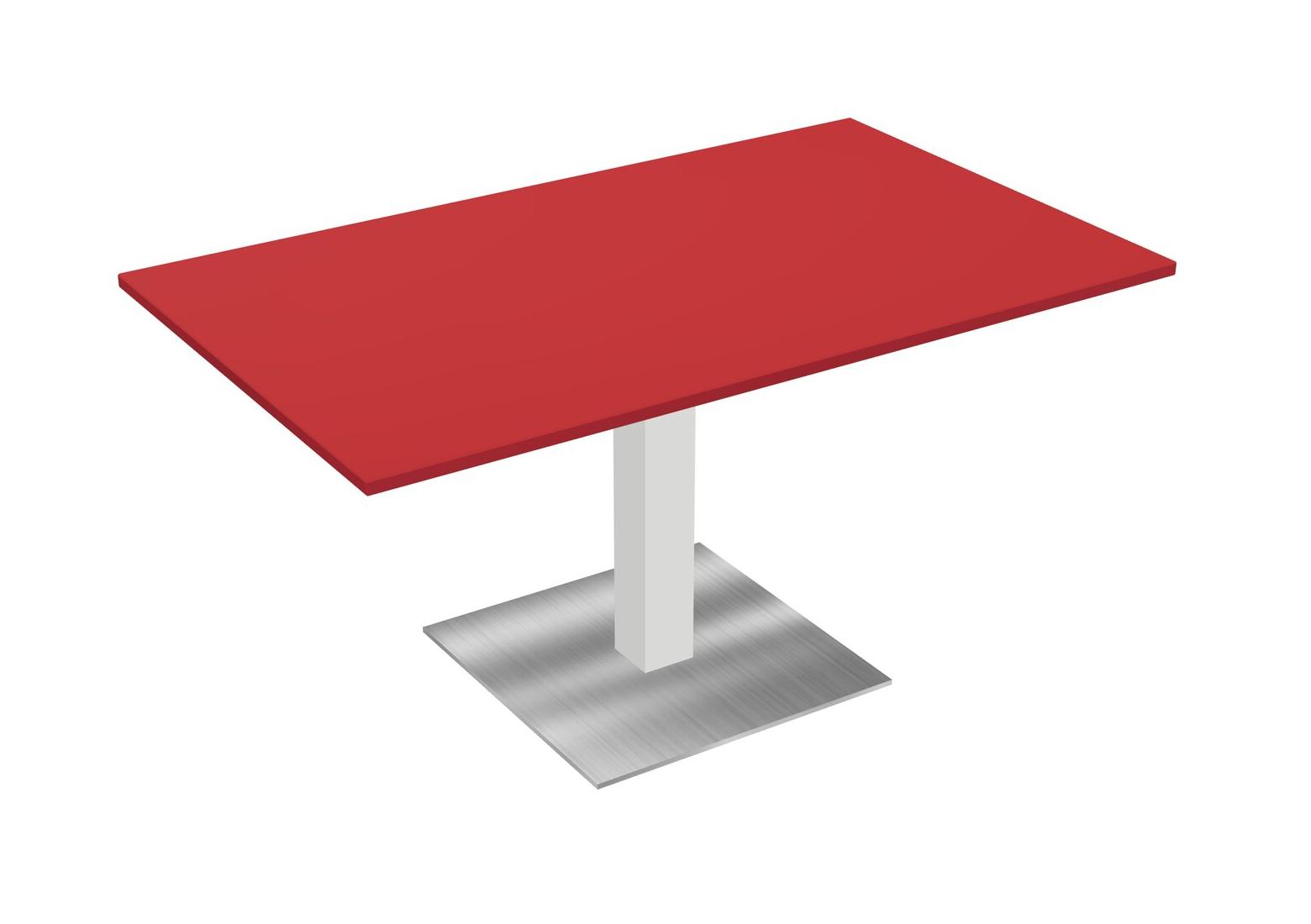 Modular Office, Restaurant, Cafeteria, Lunch Room & Food Service Table With Prism Red Tabletop & White Square Leg & Chrome Square Base Plate