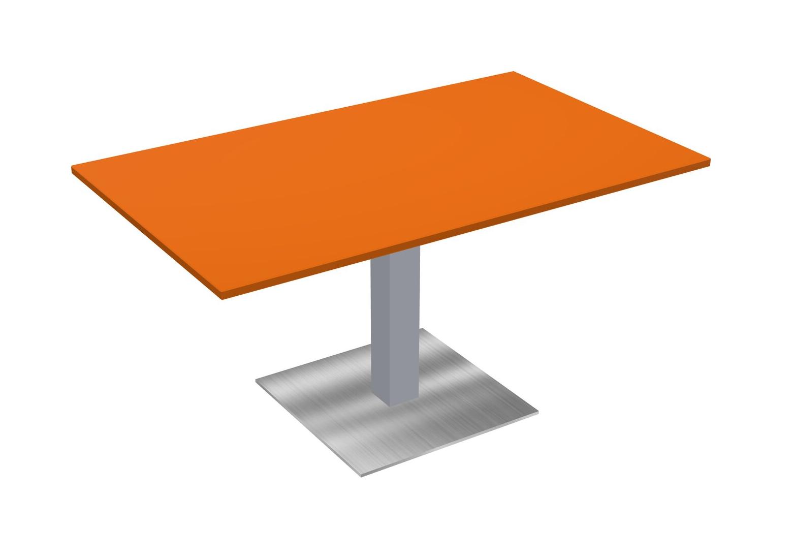 Modular Office, Restaurant, Cafeteria, Lunch Room & Food Service Table With Orange Tabletop & Grey Square Leg & Chrome Square Base Plate