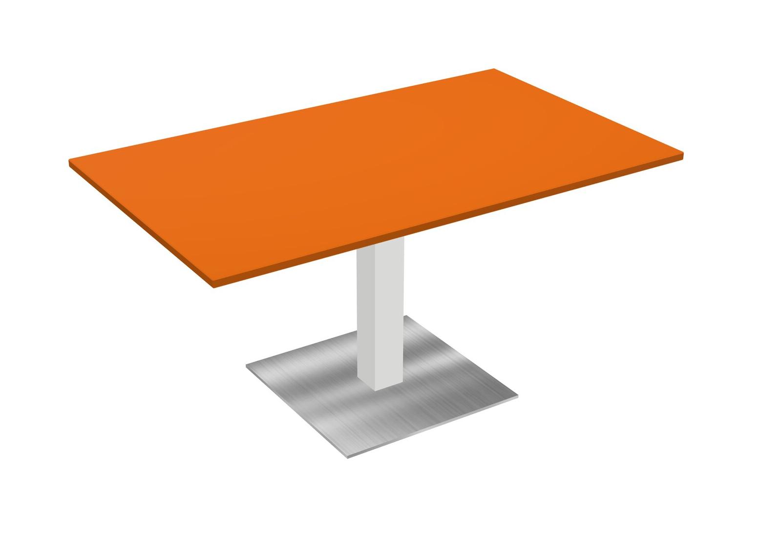 Modular Office, Restaurant, Cafeteria, Lunch Room & Food Service Table With Orange Tabletop & White Square Leg & Chrome Square Base Plate