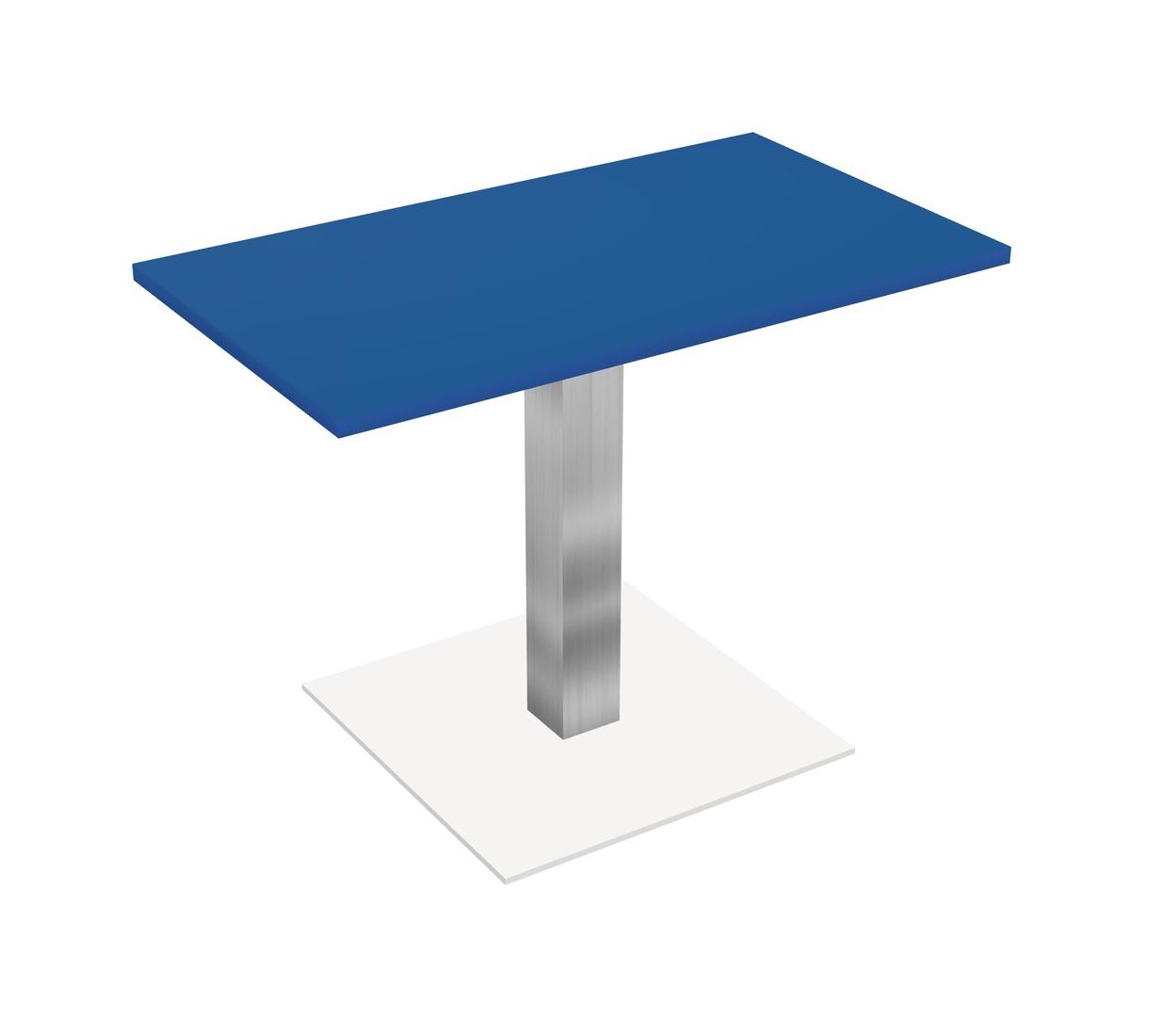 Modular Office, Restaurant, Cafeteria, Lunch Room & Food Service Table With Prism Blue Tabletop & Chrome Square Leg & White Square Base Plate