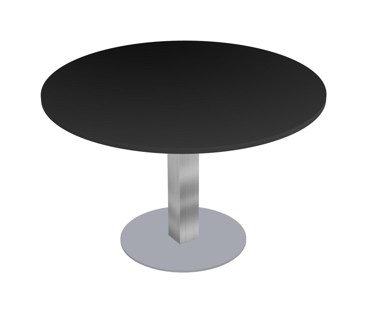 Modular Office, Restaurant, Cafeteria, Lunch Room & Food Service Table With Black Tabletop & Chrome Square Leg & Grey Round Base Plate