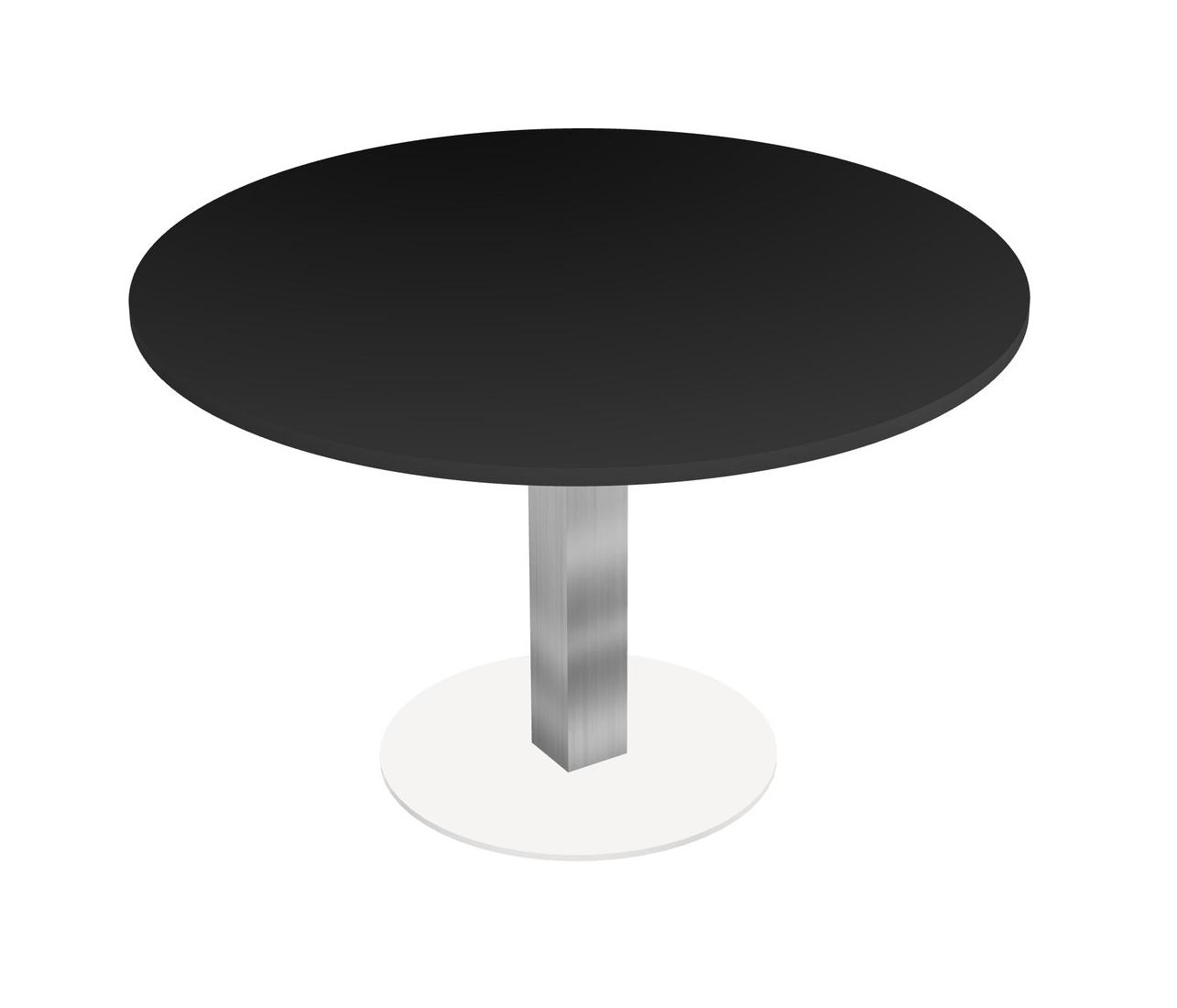 Modular Office, Restaurant, Cafeteria, Lunch Room & Food Service Table With Black Tabletop & Chrome Square Leg & White Round Base Plate