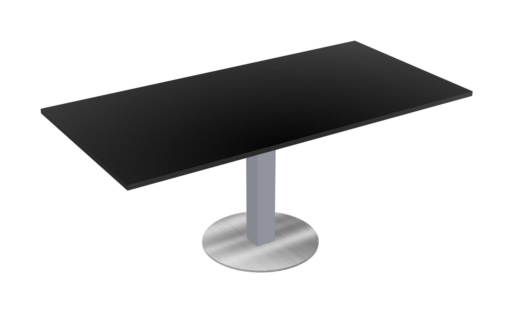 Modular Office, Restaurant, Cafeteria, Lunch Room & Food Service Table With Black Tabletop & Grey Square Leg & Chrome Round Base Plate