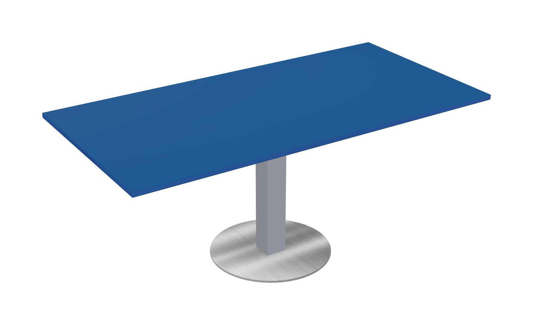 Modular Office, Restaurant, Cafeteria, Lunch Room & Food Service Table With Prism Blue Tabletop & Grey Square Leg & Chrome Round Base Plate