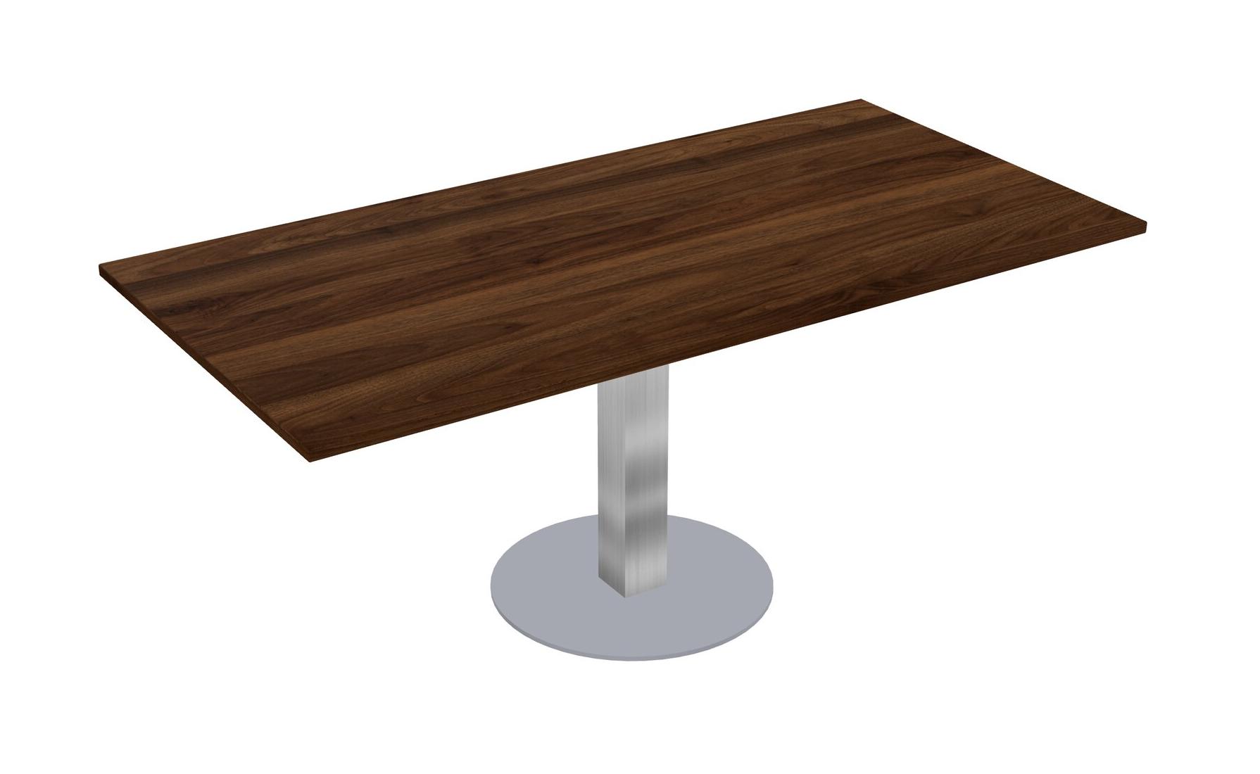 Modular Office, Restaurant, Cafeteria, Lunch Room & Food Service Table With Columbia Walnut Tabletop & Chrome Square Leg & Grey Round Base Plate