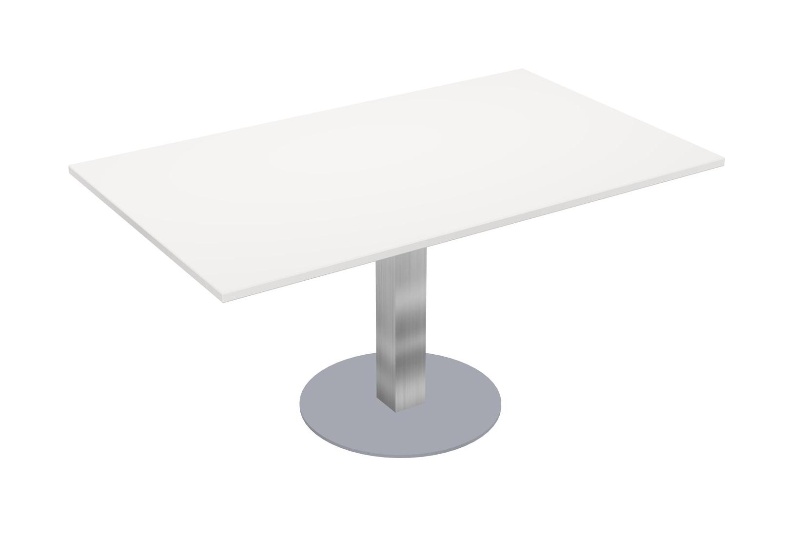 Modular Office, Restaurant, Cafeteria, Lunch Room & Food Service Table With White Tabletop & Chrome Square Leg & Grey Round Base Plate