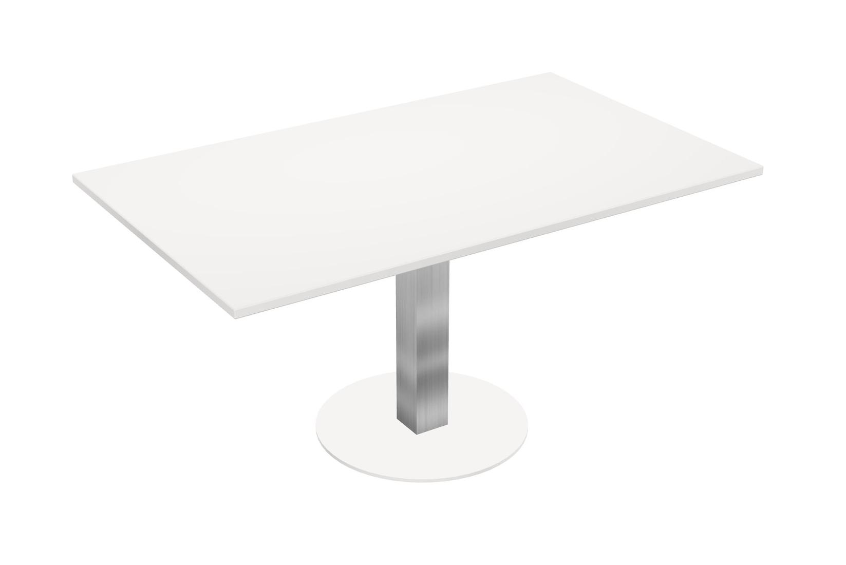 Modular Office, Restaurant, Cafeteria, Lunch Room & Food Service Table With White Tabletop & Chrome Square Leg & White Round Base Plate
