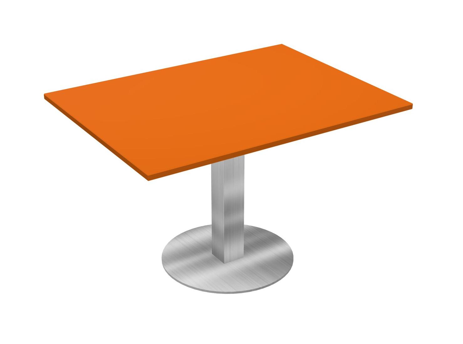 Modular Office, Restaurant, Cafeteria, Lunch Room & Food Service Table With Orange Tabletop & Chrome Square Leg & Chrome Round Base Plate