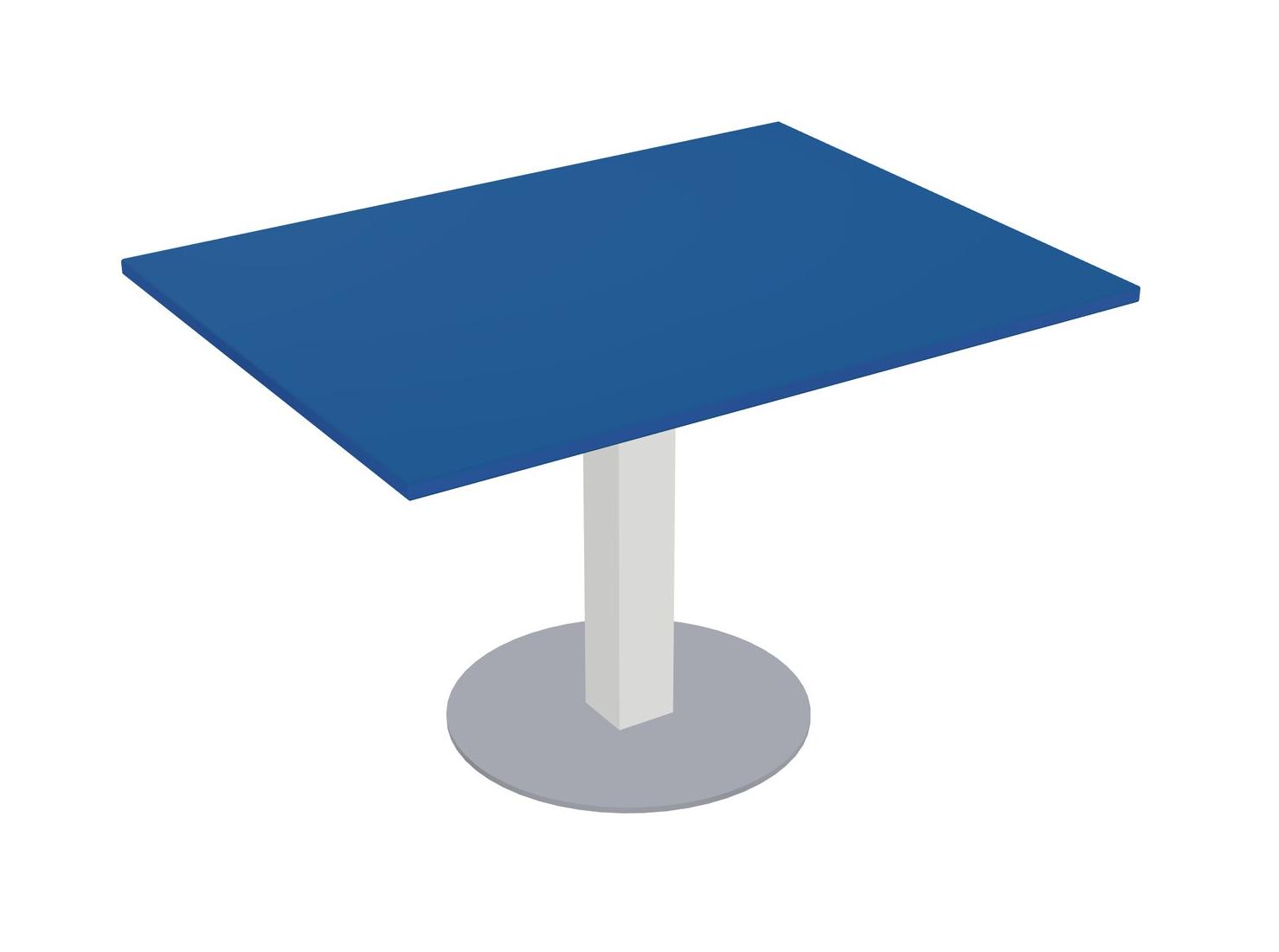 Modular Office, Restaurant, Cafeteria, Lunch Room & Food Service Table With Prism Blue Tabletop & White Square Leg & Grey Round Base Plate