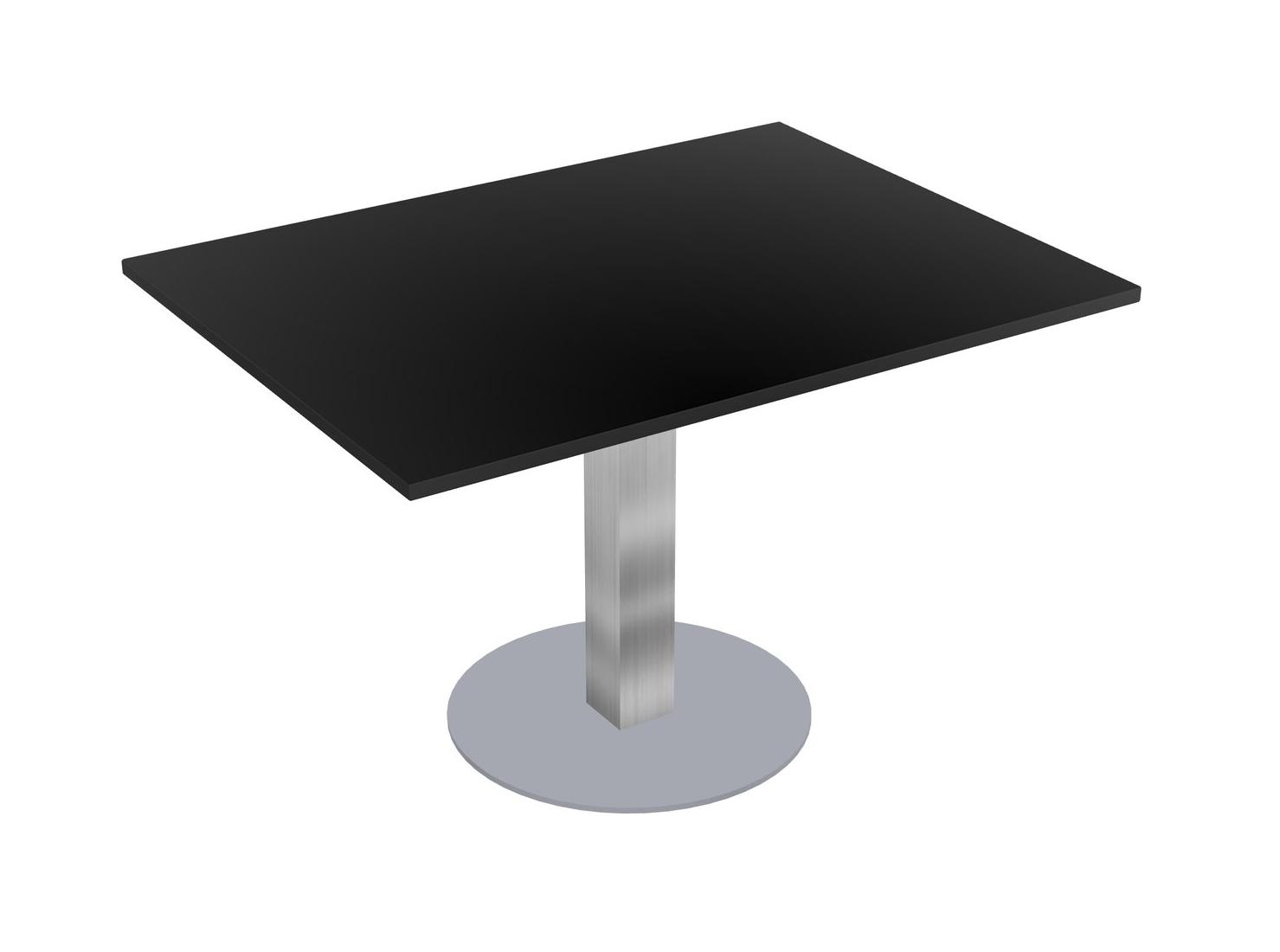 Modular Office, Restaurant, Cafeteria, Lunch Room & Food Service Table With Black Tabletop & Chrome Square Leg & Grey Round Base Plate
