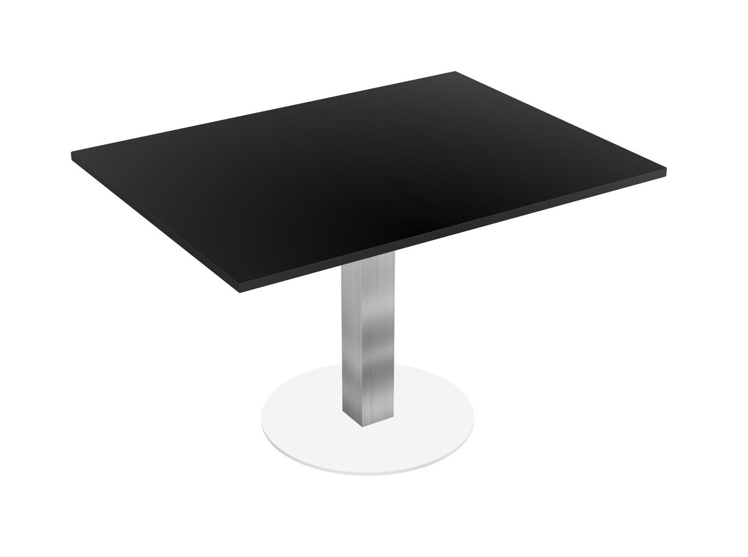 Modular Office, Restaurant, Cafeteria, Lunch Room & Food Service Table With Black Tabletop & Chrome Square Leg & White Round Base Plate