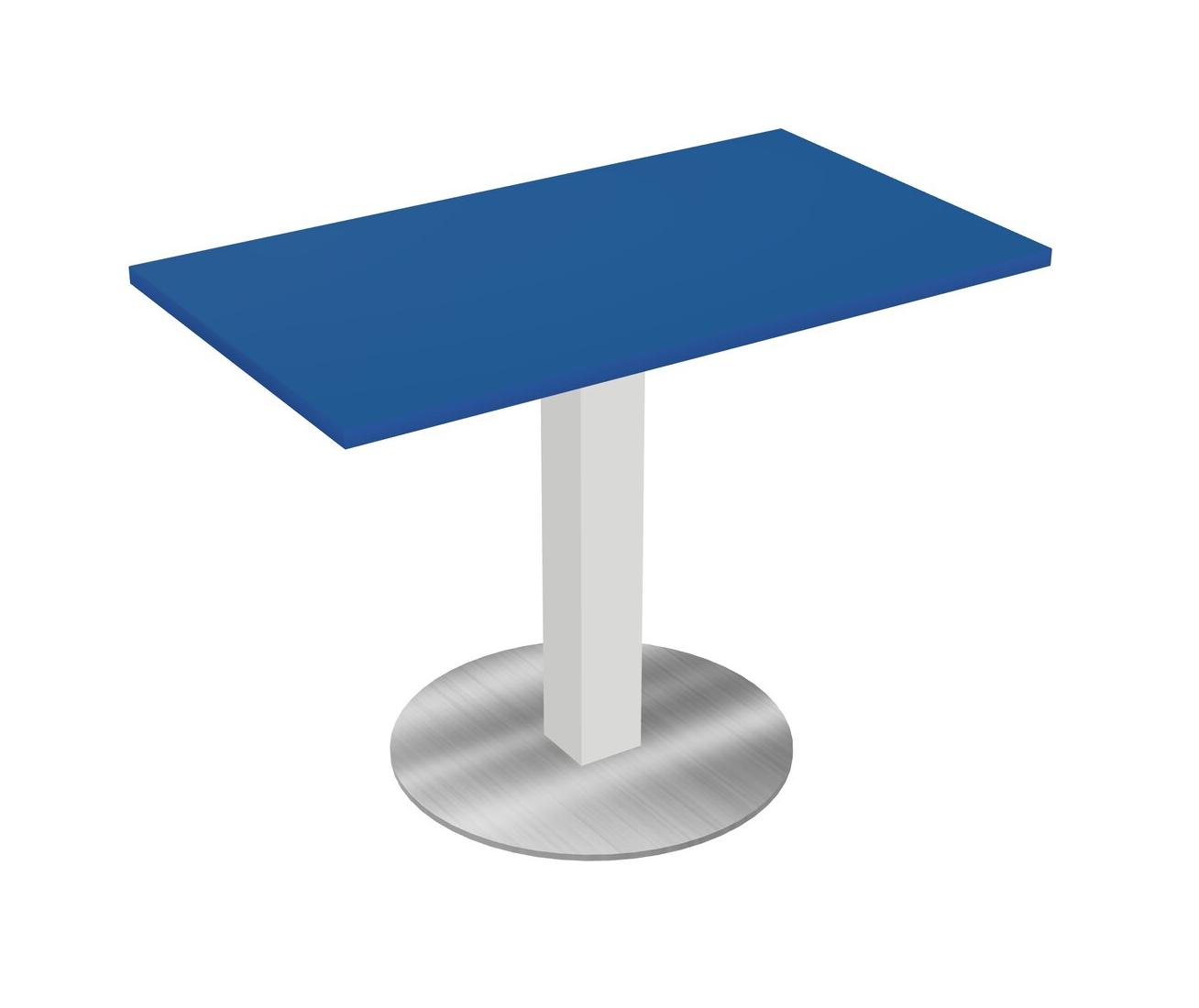 Modular Office, Restaurant, Cafeteria, Lunch Room & Food Service Table With Prism Blue Tabletop & White Square Leg & Chrome Round Base Plate
