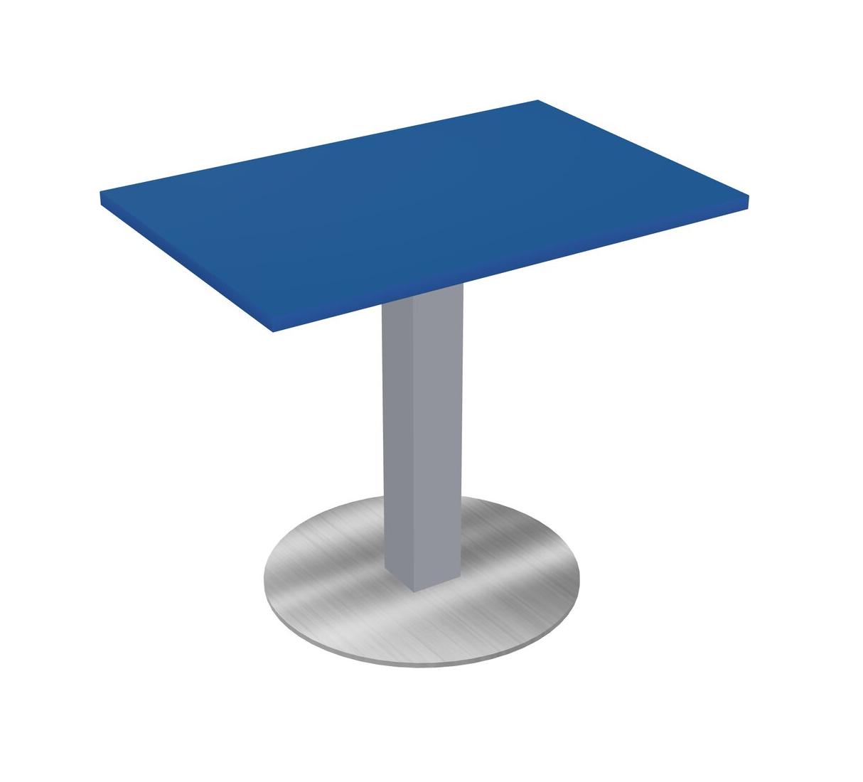 Modular Office, Restaurant, Cafeteria, Lunch Room & Food Service Table With Prism Blue Tabletop & Grey Square Leg & Chrome Round Base Plate