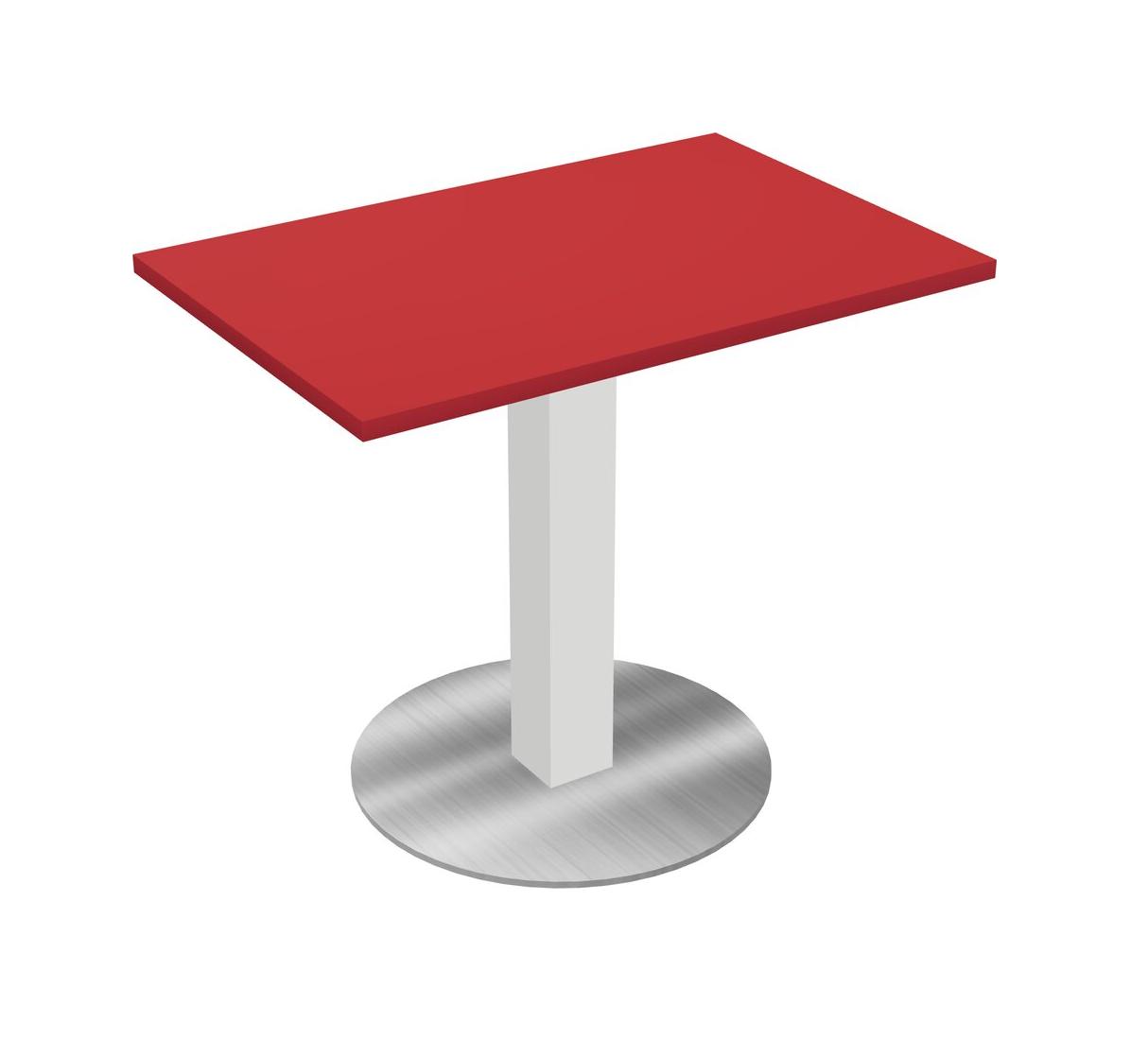 Modular Office, Restaurant, Cafeteria, Lunch Room & Food Service Table With Prism Red Tabletop & White Square Leg & Chrome Round Base Plate