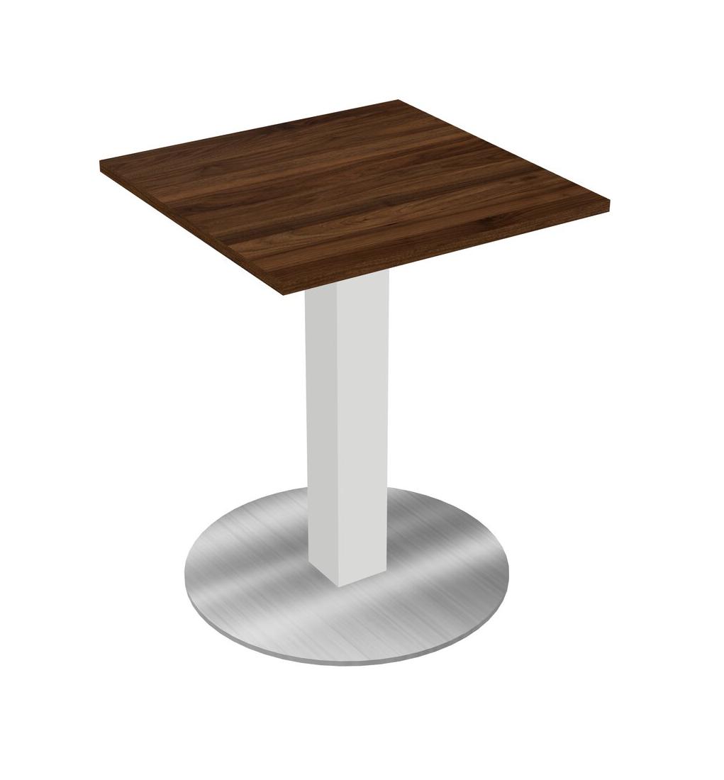 Modular Office, Restaurant, Cafeteria, Lunch Room & Food Service Table With Columbia Walnut Tabletop & White Square Leg & Chrome Round Base Plate
