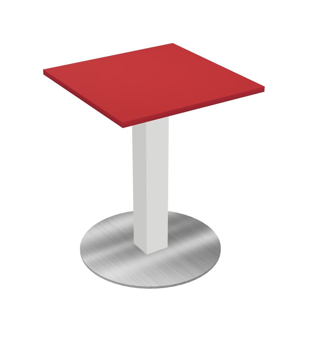 Modular Office, Restaurant, Cafeteria, Lunch Room & Food Service Table With Prism Red Tabletop & White Square Leg & Chrome Round Base Plate
