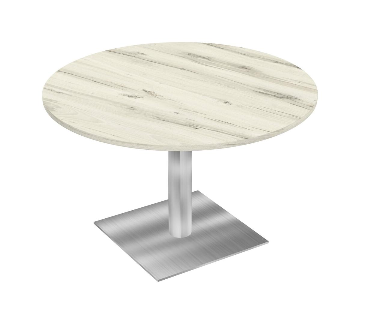 Modular Office, Restaurant, Cafeteria, Lunch Room & Food Service Table With Heinne Holz Tabletop & Chrome Round Leg & Chrome Square Base Plate