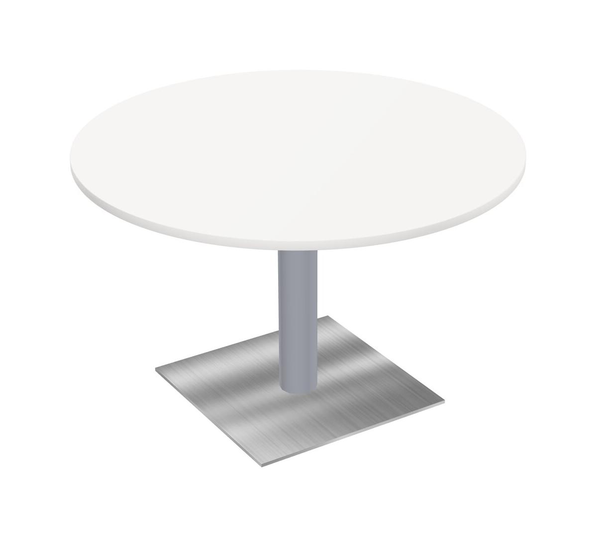 Modular Office, Restaurant, Cafeteria, Lunch Room & Food Service Table With White Tabletop & Grey Round Leg & Chrome Square Base Plate
