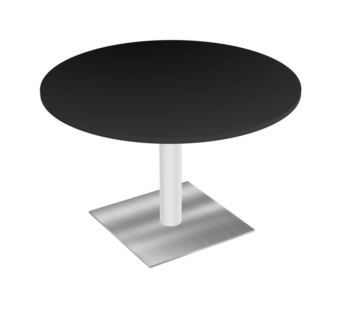Modular Office, Restaurant, Cafeteria, Lunch Room & Food Service Table With Black Tabletop & White Round Leg & Chrome Square Base Plate