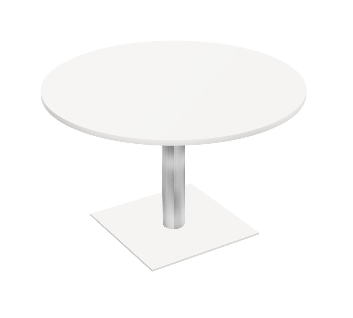 Modular Office, Restaurant, Cafeteria, Lunch Room & Food Service Table With White Tabletop & Chrome Round Leg & White Square Base Plate