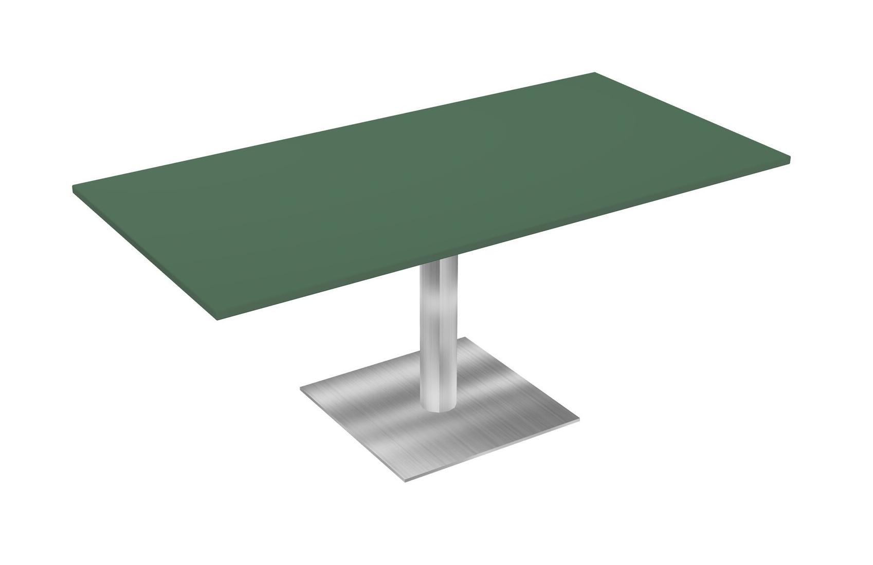 Modular Office, Restaurant, Cafeteria, Lunch Room & Food Service Table With Green Tabletop & Chrome Round Leg & Chrome Square Base Plate