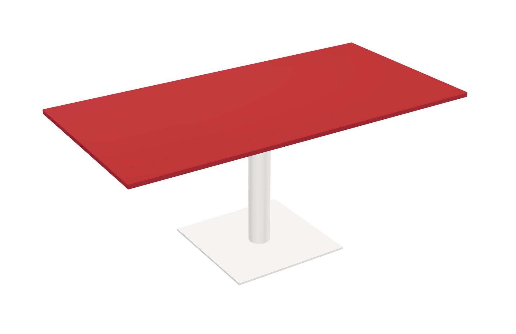 Modular Office, Restaurant, Cafeteria, Lunch Room & Food Service Table With Prism Red Tabletop & White Round Leg & White Square Base Plate