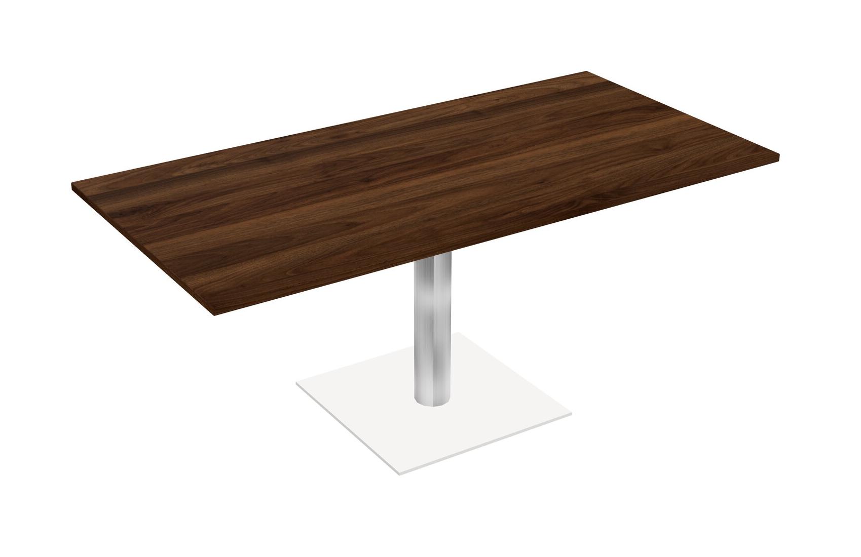 Modular Office, Restaurant, Cafeteria, Lunch Room & Food Service Table With Columbia Walnut Tabletop & Chrome Round Leg & White Square Base Plate