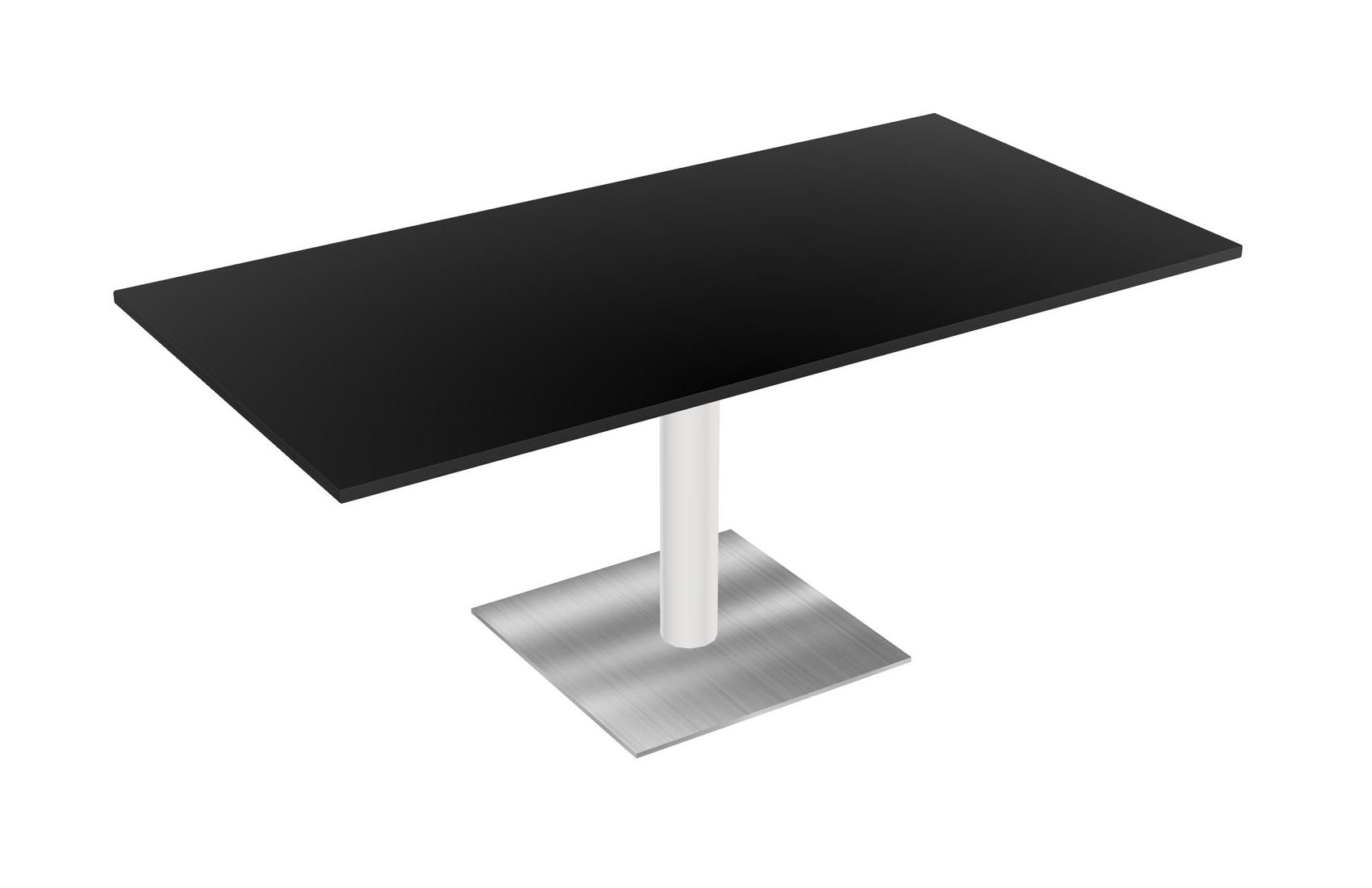 Modular Office, Restaurant, Cafeteria, Lunch Room & Food Service Table With Black Tabletop & White Round Leg & Chrome Square Base Plate