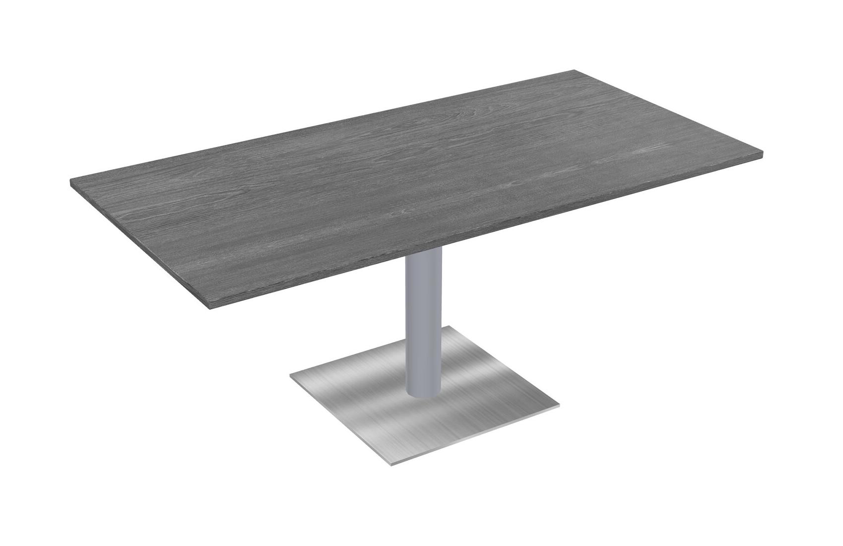 Modular Office, Restaurant, Cafeteria, Lunch Room & Food Service Table With Grey Tabletop & Grey Round Leg & Chrome Square Base Plate