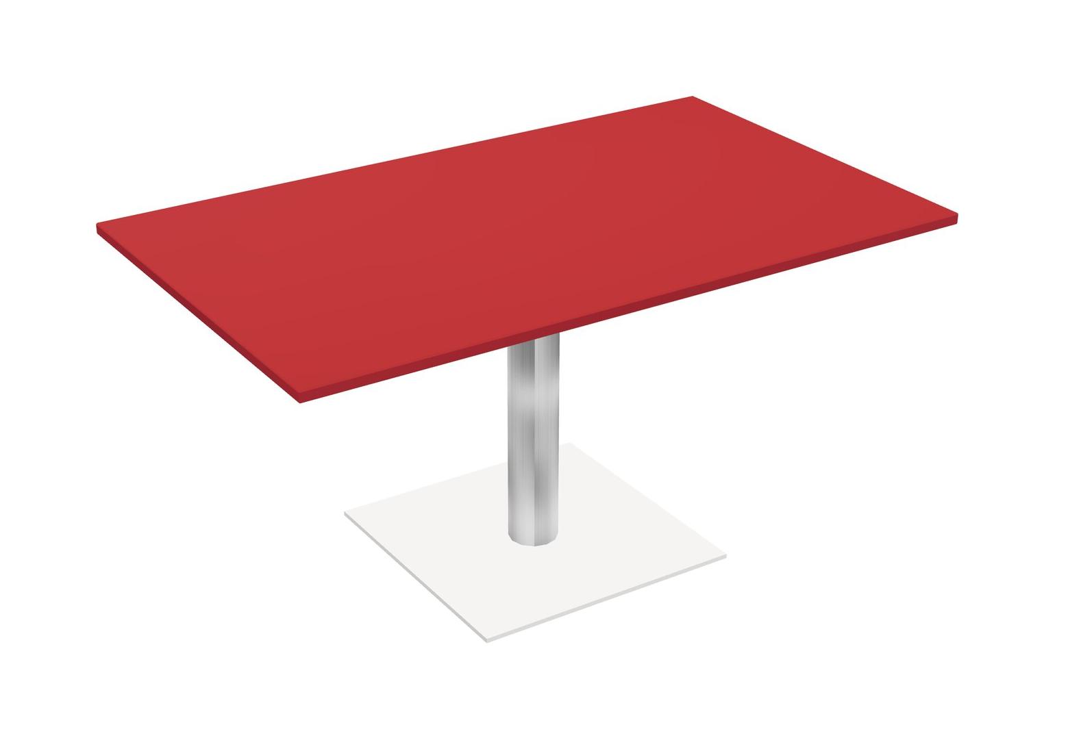 Modular Office, Restaurant, Cafeteria, Lunch Room & Food Service Table With Prism Red Tabletop & Chrome Round Leg & White Square Base Plate