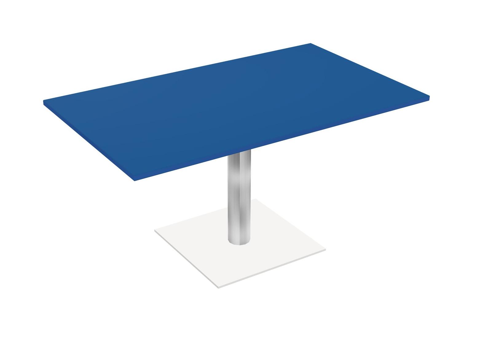 Modular Office, Restaurant, Cafeteria, Lunch Room & Food Service Table With Prism Blue Tabletop & Chrome Round Leg & White Square Base Plate