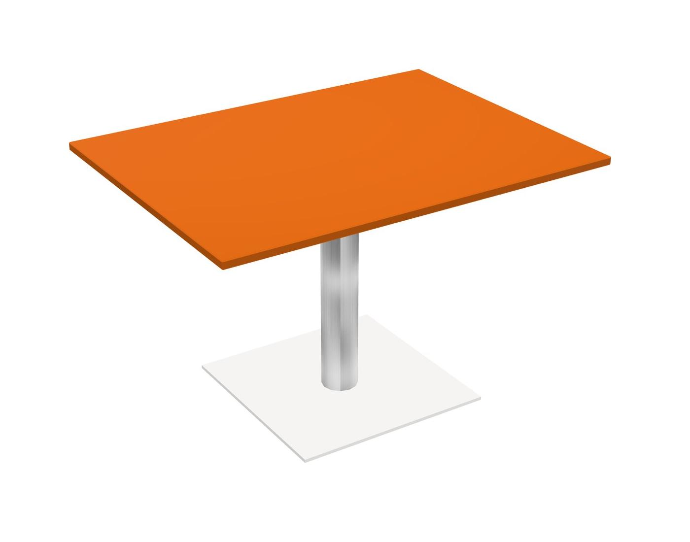 Modular Office, Restaurant, Cafeteria, Lunch Room & Food Service Table With Orange Tabletop & Chrome Round Leg & White Square Base Plate