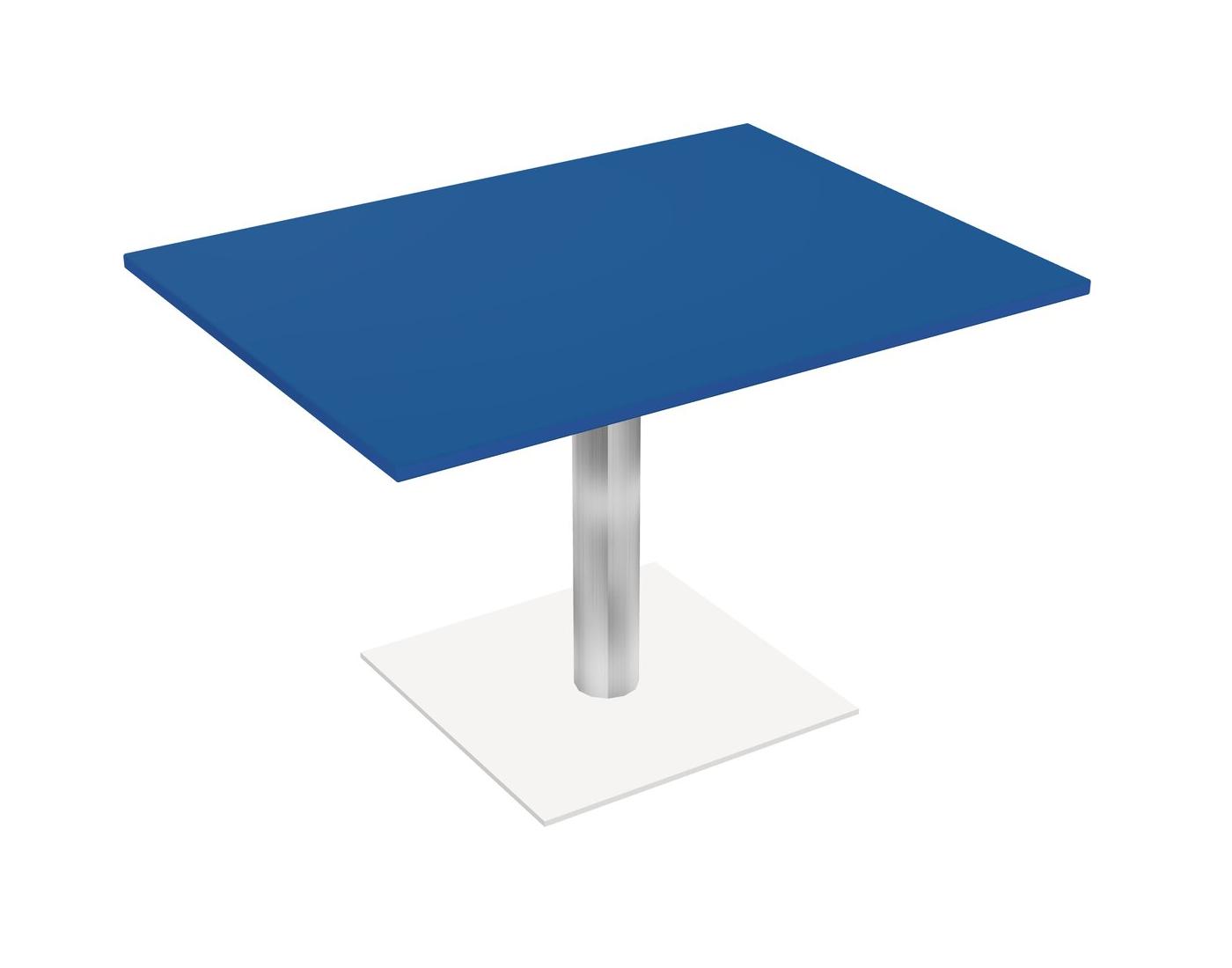Modular Office, Restaurant, Cafeteria, Lunch Room & Food Service Table With Prism Blue Tabletop & Chrome Round Leg & White Square Base Plate