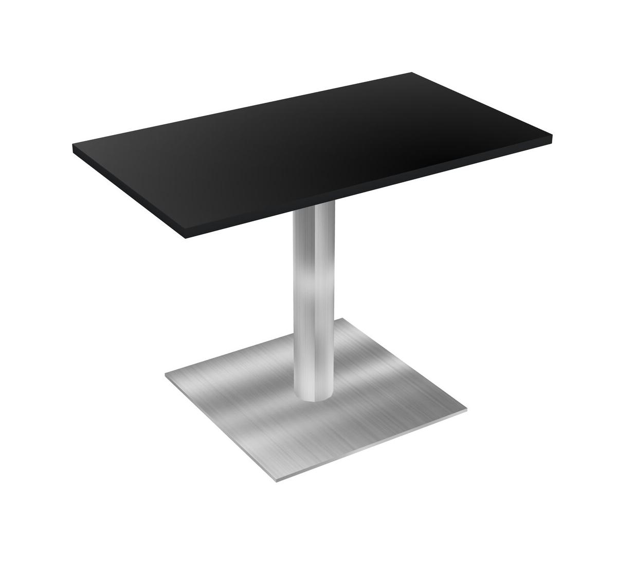 Modular Office, Restaurant, Cafeteria, Lunch Room & Food Service Table With Black Tabletop & Chrome Round Leg & Chrome Square Base Plate