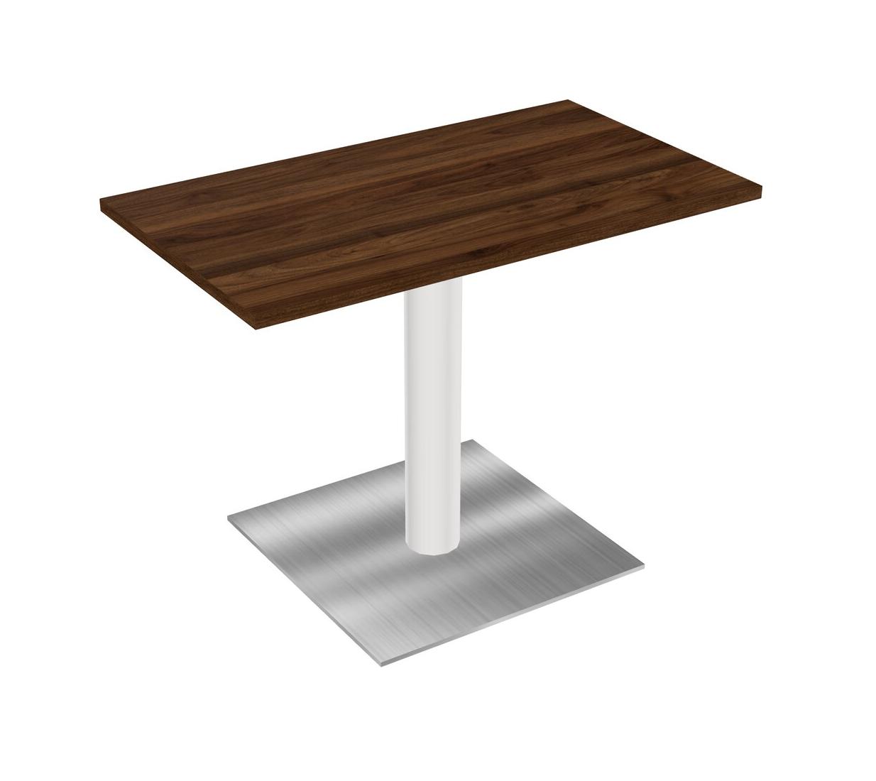 Modular Office, Restaurant, Cafeteria, Lunch Room & Food Service Table With Columbia Walnut Tabletop & White Round Leg & Chrome Square Base Plate