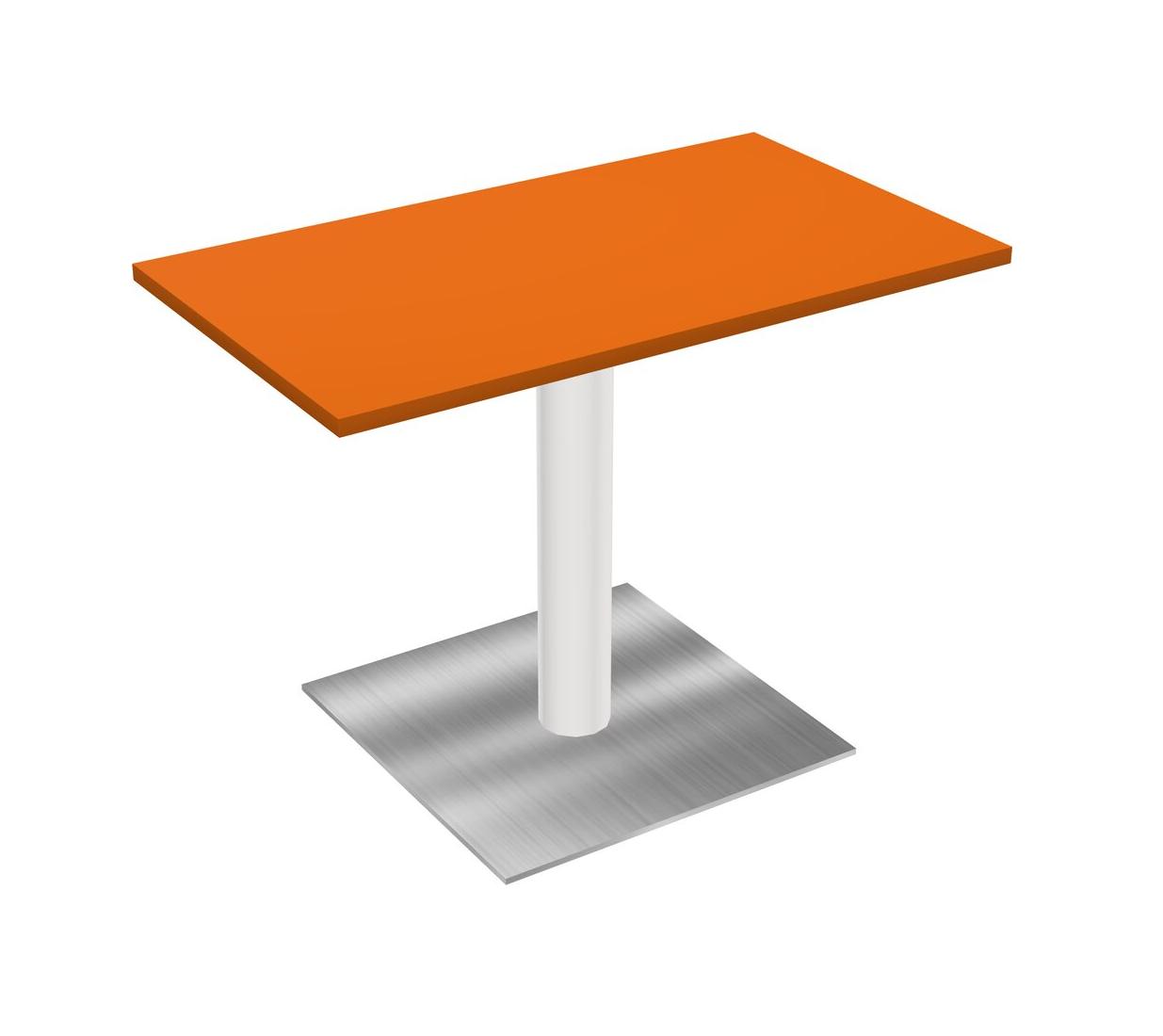 Modular Office, Restaurant, Cafeteria, Lunch Room & Food Service Table With Orange Tabletop & White Round Leg & Chrome Square Base Plate